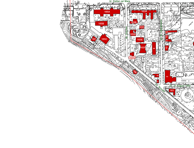 Sectorul de hartă topografică expus prezintă imaginea în scară reală a situaţiei urbanistice actuale a minucipiului.